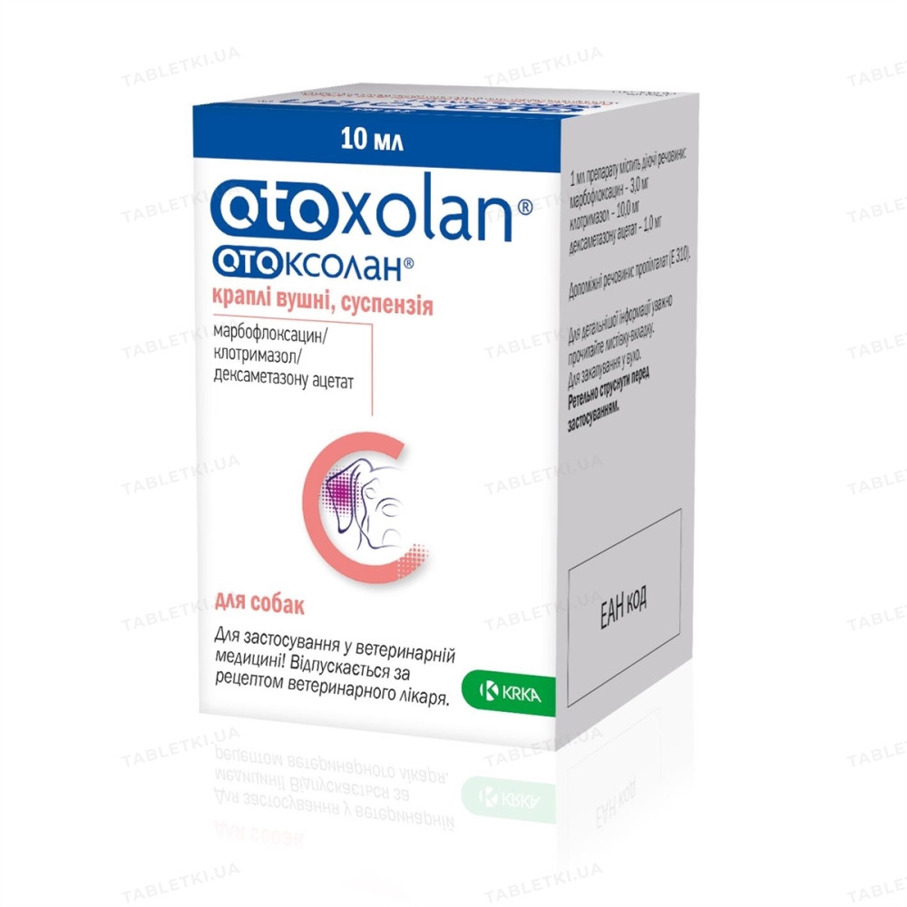 Отоксолан призначають собакам для лікування отиту бактеріальної і грибкової етіології, викликаного чутливими до марбофлоксацину і клотримазолу мікроорганізмами і грибами.